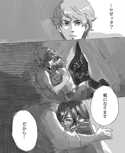 抱きついてきたロゼッタに戸惑っている顔とか、動揺のままに時が止まっていそうです。